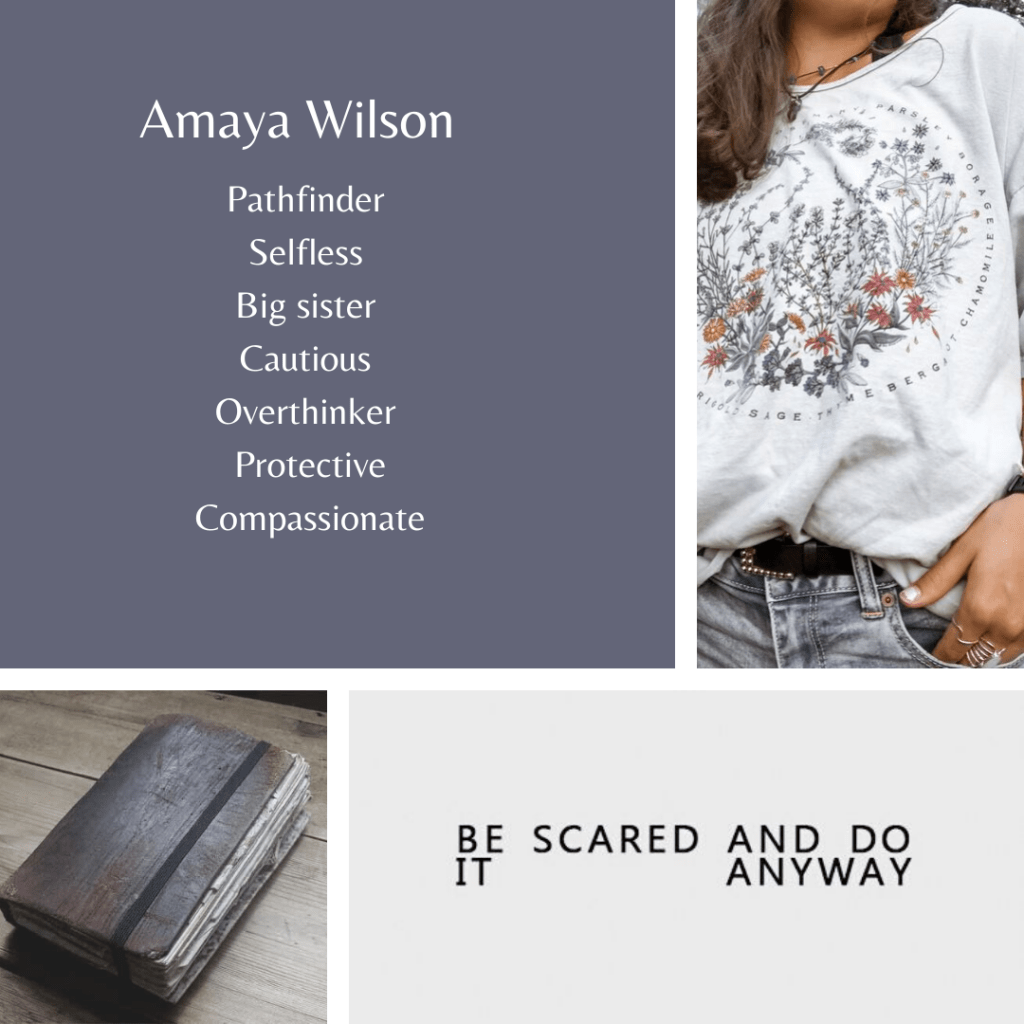 Fun facts about Amaya: She and her siblings are of Native American (Cherokee) descent on their father’s side. She is seventeen and a Junior in high school. After school she works late at the local diner, which is run by her best friend’s parents, to help with the money situation at home. She has three younger siblings, Tyler, Jonny and Talullah. Amaya loves hiking and being out in nature and wishes for adventure and to change the world one day.