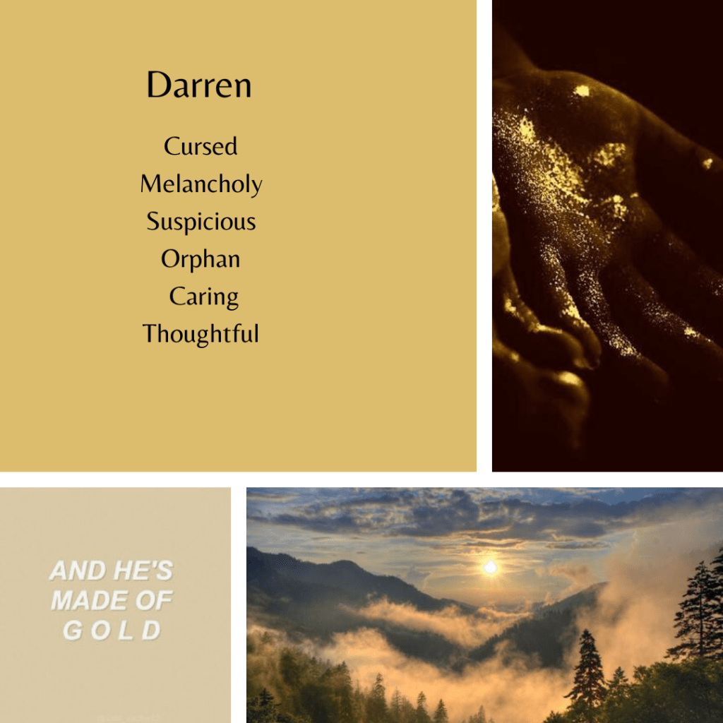 About Darren: Darren grew up in the 1840’s. Sadly, he never knew his parents, having been taken from them by a plantation owner after the man realized what Darren could do. Darren grew up owned by this man, who used Darren’s gift to turn things to gold with a touch of his fingers to make him exuberantly wealthy. Darren doesn’t trust easily, but when you do gain his trust, he is loyal to a fault. He would die for you. He has a pretty bleak and pessimistic outlook on life. While running for his life, he was put under a deep ageless sleep by a shaman and woke up a century or two later in the 21st century.